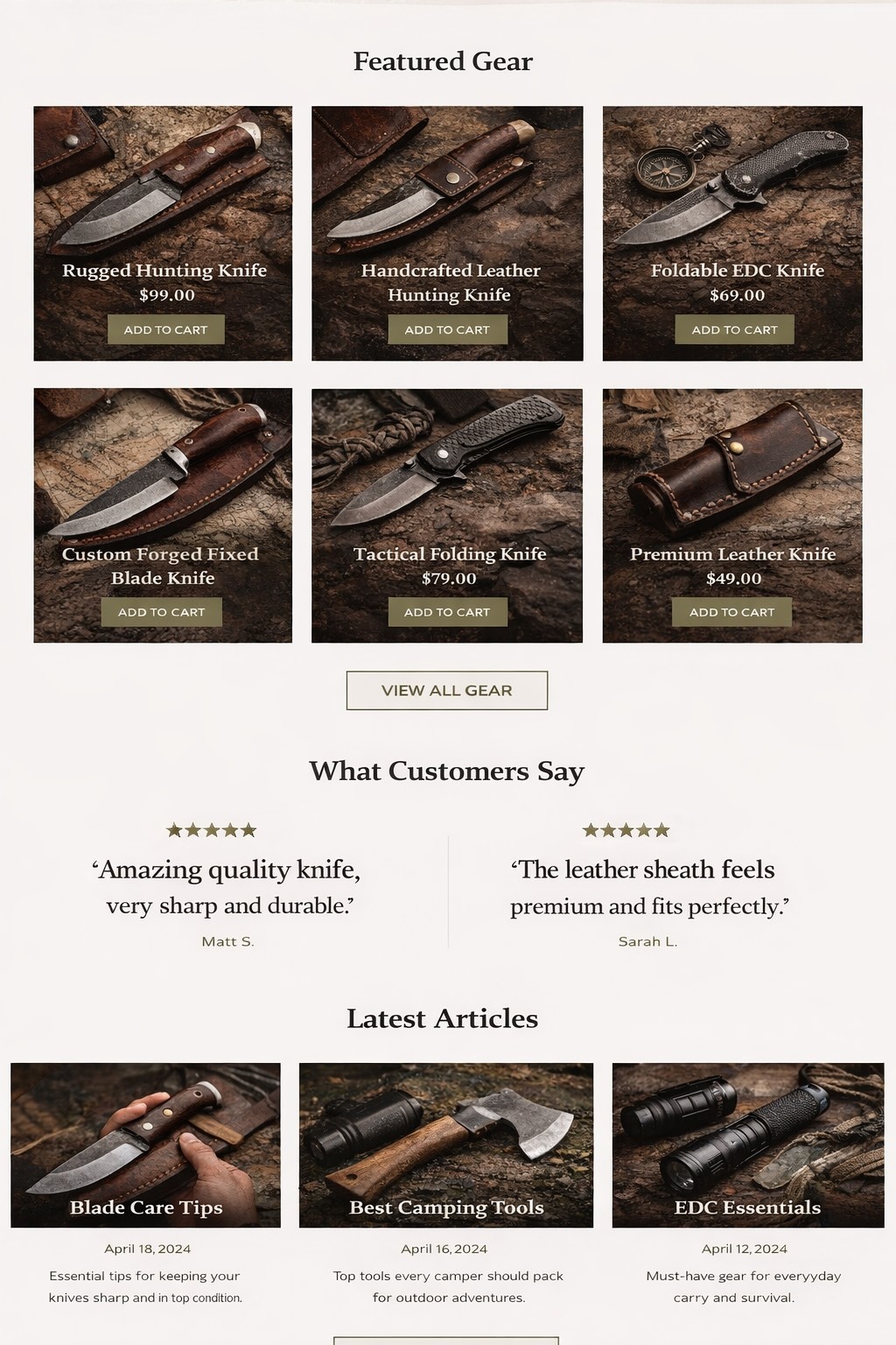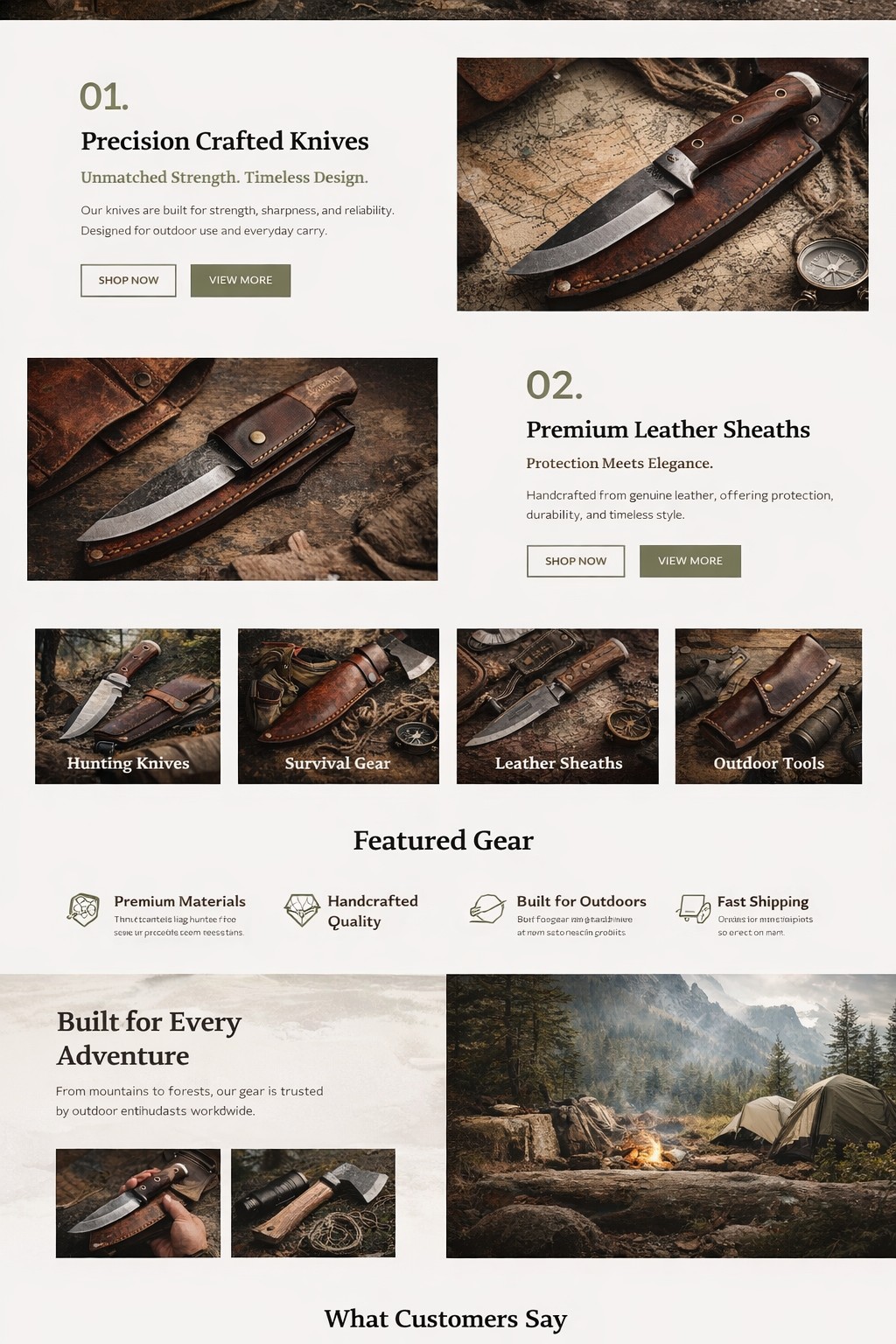 “Our knives are built for strength, sharpness, and reliability. Designed for outdoor use and everyday carry, each piece is paired with a handcrafted leather sheath for protection, style, and convenience.”